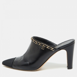 Chanel Black Leather Pearl Embellished Mules Size 41