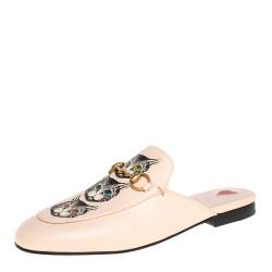 Gucci Pink Leather Mystic Cat Princetown Mule Sandals Size 37