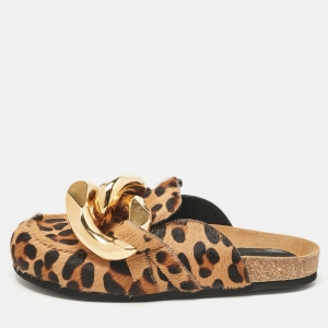 J.W.Anderson Brown Calf Hair Leopard Print Chain Detail Flat Mules Size 38