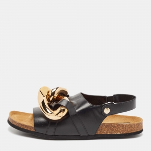 J.W. Anderson Black Leather Chain Link Flat Sandals Size 44