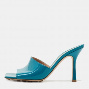 Bottega Veneta Black Intrecciato Patent Leather Wedge Sandals Size 38