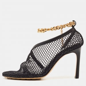 Bottega Veneta Black Leather and Calf Hair Ankle Strap Sandals Size 37.5