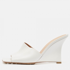 Bottega Veneta White Intrecciato Leather Lido Flat Slides Size 39