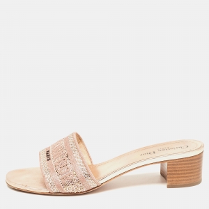 Dior Pink/Cream Fabric Dway Flat Slides Size 38