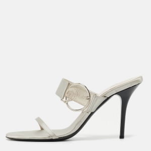 Dior White Leather Every-D Flat Slide Sandals Size 37
