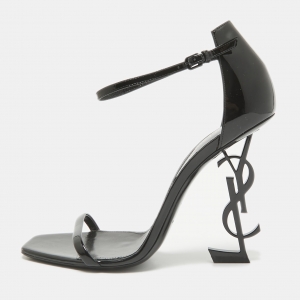 Saint Laurent Black Patent Leather Cassandra Ankle Strap Sandals Size 38.5