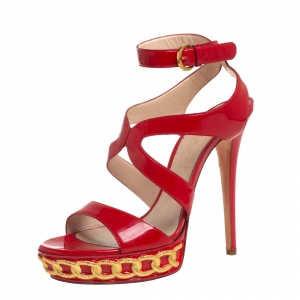Casadei Beige Patent Leather Peep Toe Platform Pumps Size 37