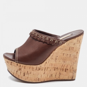 Casadei Beige Suede Raffia Wedge Platform Slingback Sandals Size 38