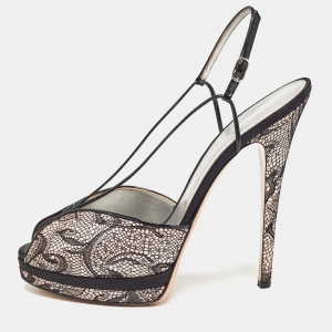 Casadei Black Laser Cut Leather Peep Toe Pumps Size 39