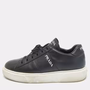 Prada Sports Black Perforated Leather Lace Up Low Top Sneakers Size 38