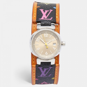 Louis Vuitton Stainless Steel Monogram Tambour Q1211 Women's Wristwatch 28 mm