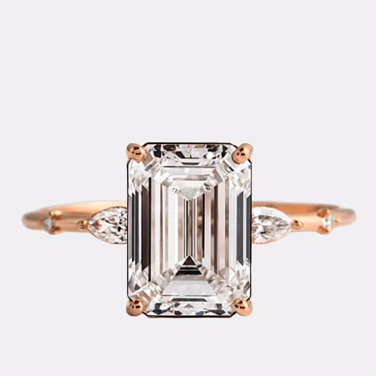 2.7 cts Lab Grown Emerald Diamond 14k Rose Gold Ring Size 8