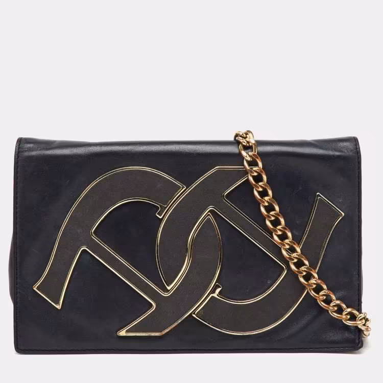 Aigner Black Leather Logo Flap Chain Shoulder Bag