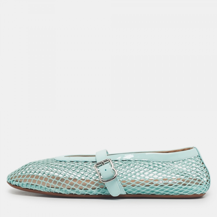 Alaia Blue Mesh and Patent Leather Fishnet Ballet Flats Size 38