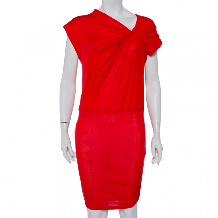 Alice + Olivia Red Lyocell Twisted Draped Ruched Oversized Mini Dress XS