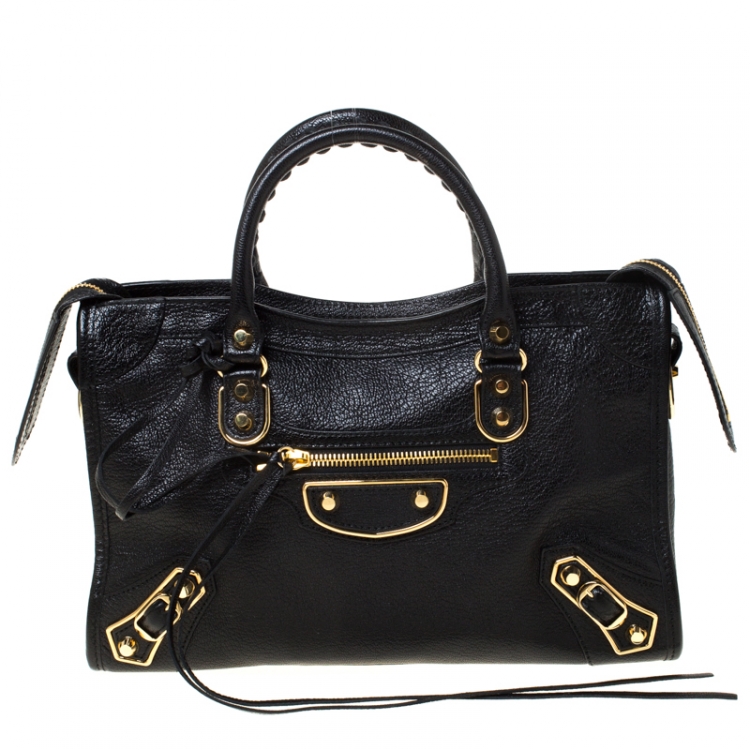 Pre Owned Balenciaga Black Leather Metallic Edge City Tote