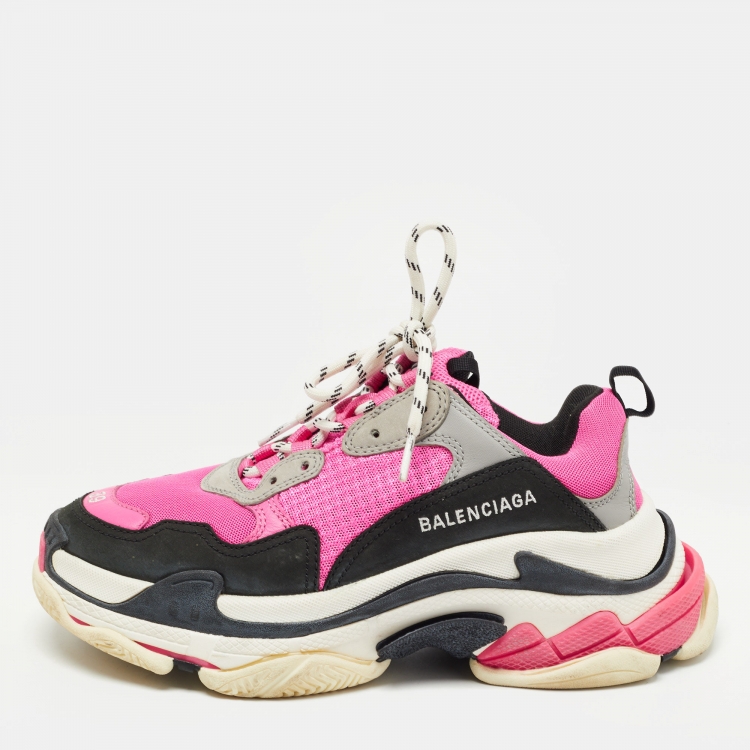 Balenciaga Multicolor Leather and Mesh Triple S Low Top Sneakers Size 39