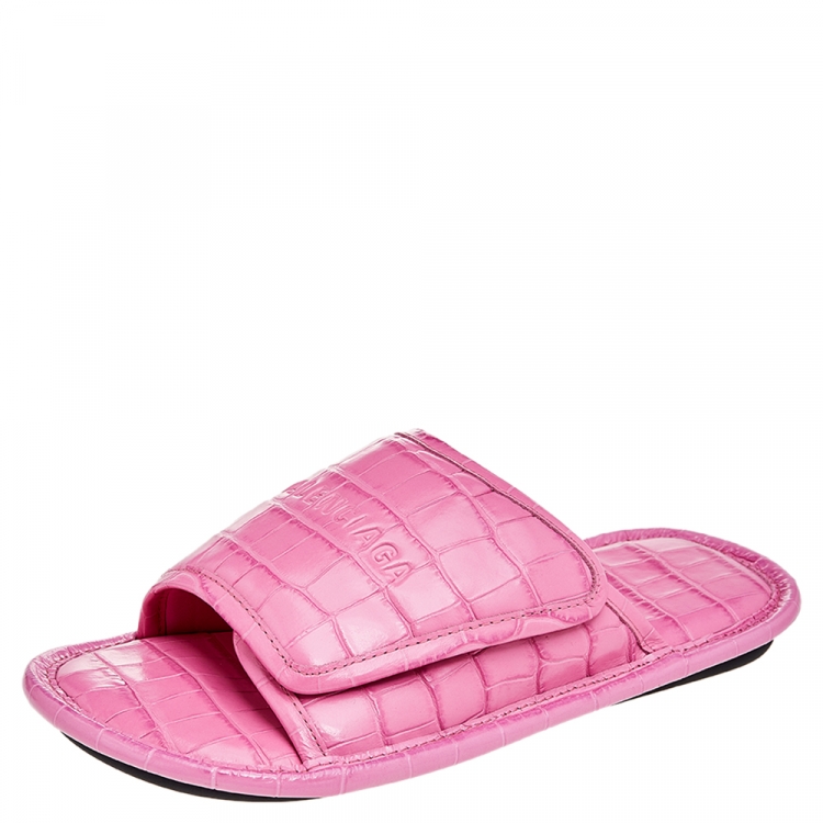 Balenciaga Pink Croc Embossed Leather Home Slide Sandals Size 38
