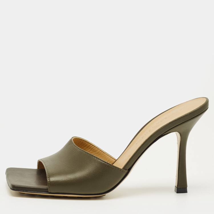 Bottega Veneta Olive Green Leather Lido Slide Sandals Size 36.5