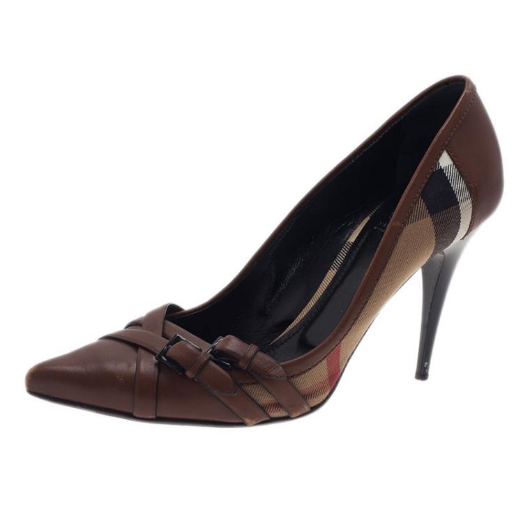 Burberry Brown Leather Novacheck Pointed Toe Buckle Pumps Size 39