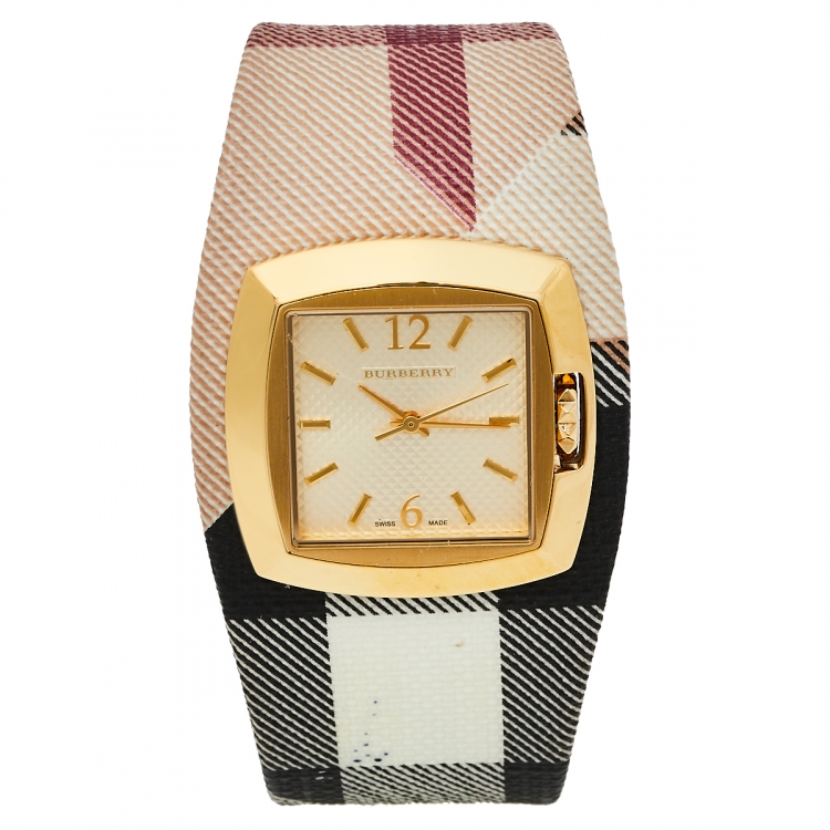 Canvas, Gold Tone Stainless Steel, Leather