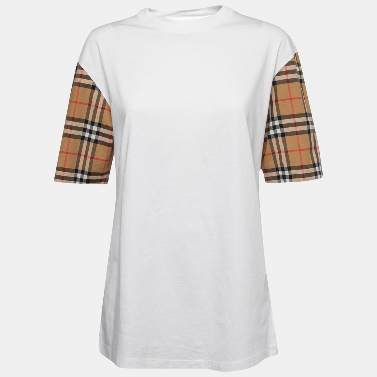 Burberry White Cotton Vintage Checked Half Sleeve T-Shirt M