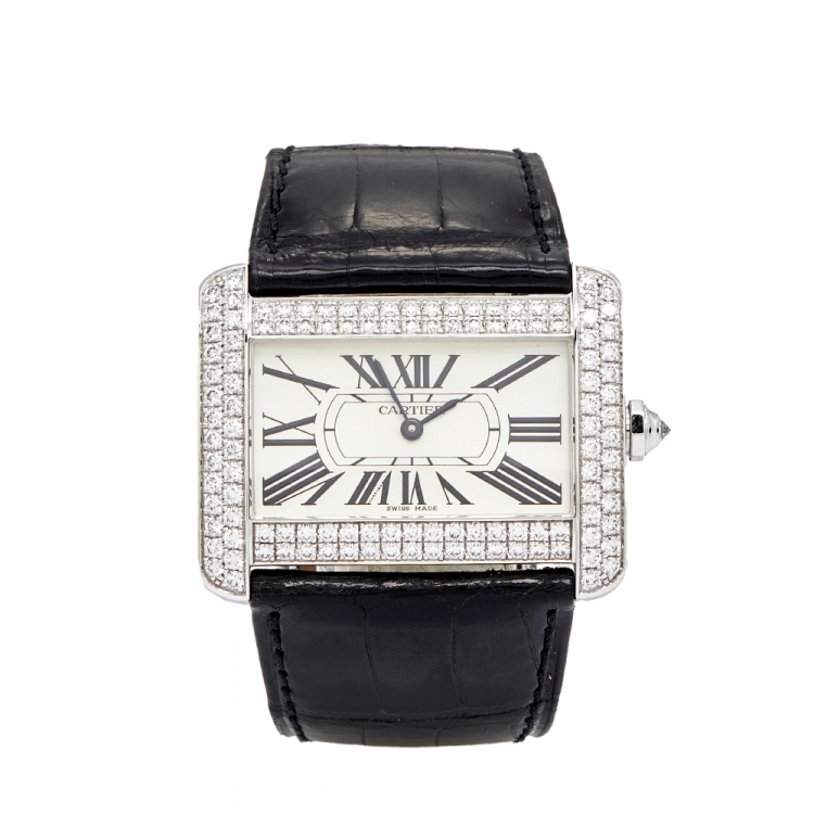 18k White Gold, Alligator Leather