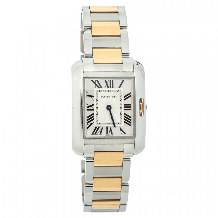 Cartier Silver 18K Yellow Gold & Stainless Steel Tank Anglaise 3704 Women's Wristwatch 26 mm