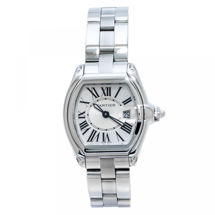 Original Box, Original Case, Certificate Info Booklet, Cartier Roadster Info Booklet, 2 Extra Links (1 missing lock pin), 1 Extra Black Leather Strap (used), Cartier International Service Warranty Document