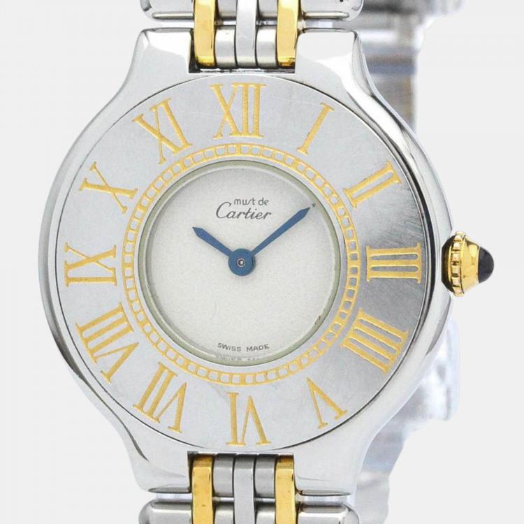 Pre Owned Cartier Silver Yellow Gold Plated And Stainless Steel Must 21 de Cartier Quartz Women's Wristwatch 28 mm
