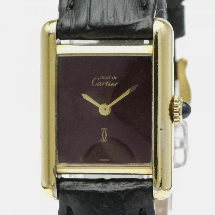 Cartier Tank Vermeil Gold Plated Leater Hand-Winding Ladies Watch 20 mm