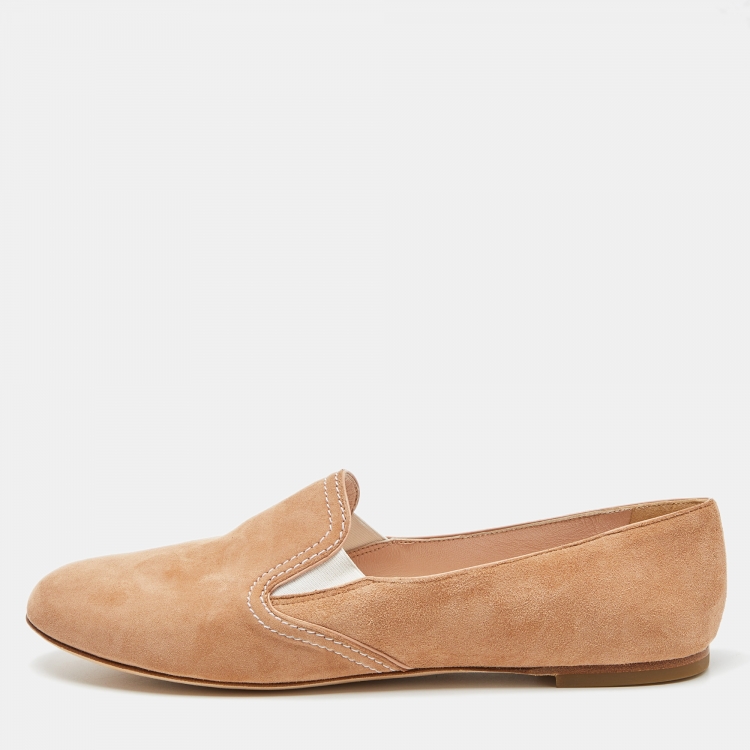 Casadei Beige Suede Smoking Slippers Size 40