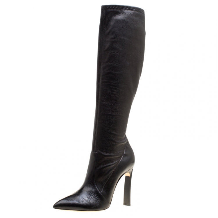 Casadei Black Leather Pointed Toe Knee Length Boots Size 40