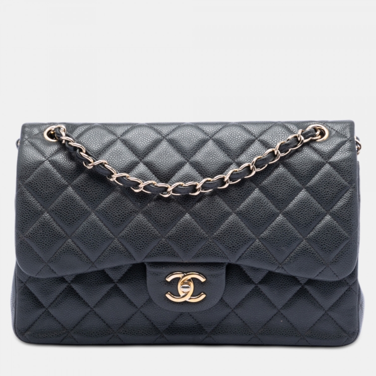 Pre Owned Chanel Black Jumbo Classic Caviar Double Flap