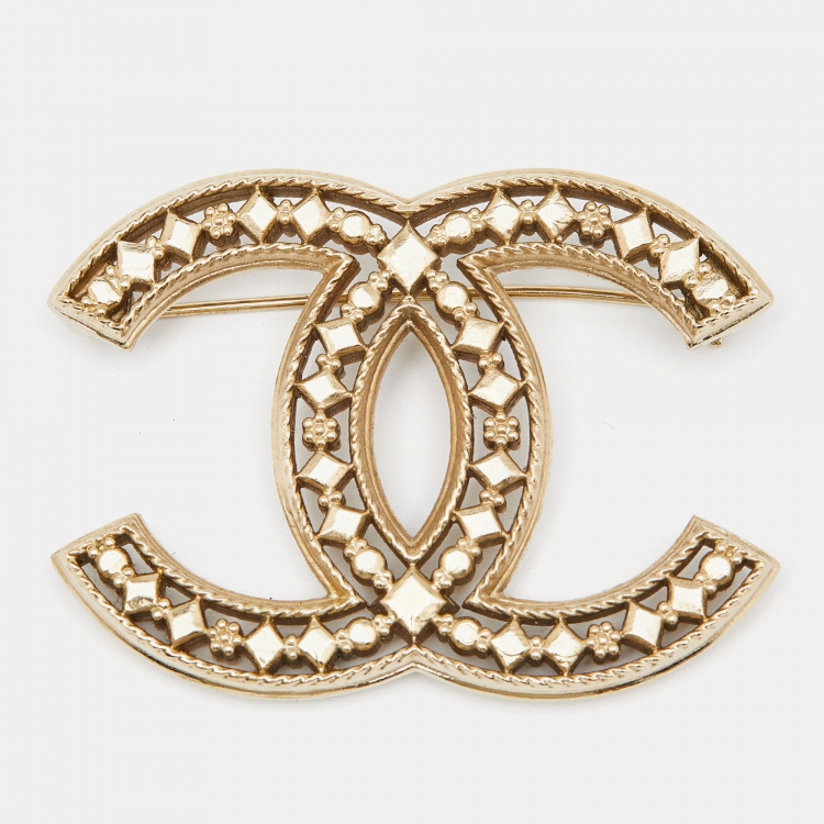 Chanel CC Gold Tone Brooch