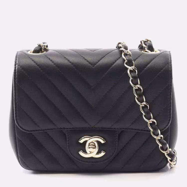 Chanel Chevron V-Stitch Black Lambskin Leather Shoulder Bag