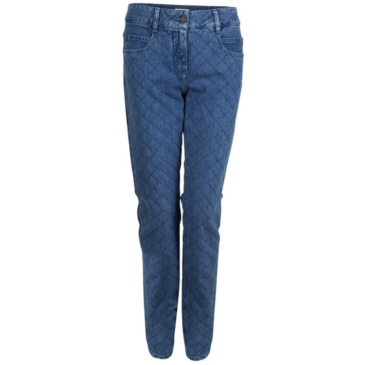Pre Owned Chanel Indigo Denim Topstitch Detail Jeans M