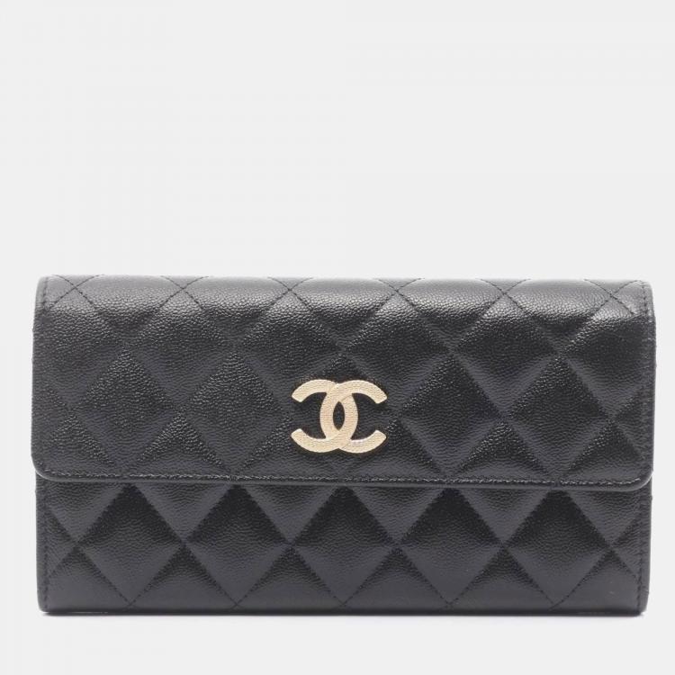 Chanel Matelasse Bifold Long Wallet In Grained Calfskin Leather Black