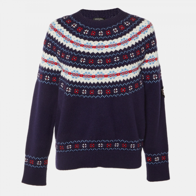 Pre Owned Chanel Navy Blue Coco Neige Wool Crew Neck Jumper M