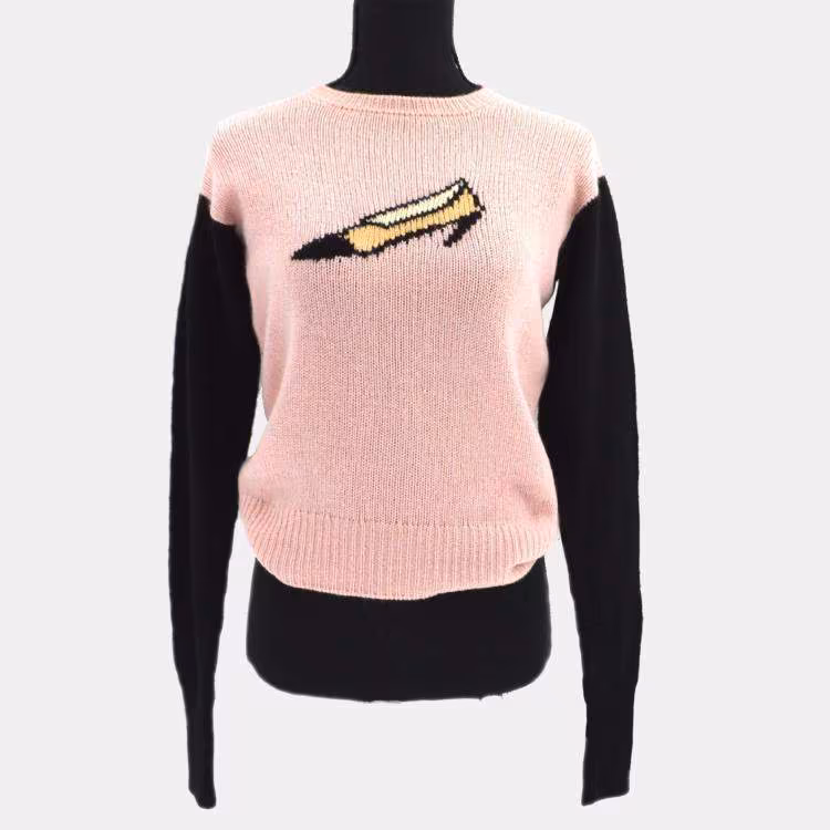 مملوكة مسبقًا Chanel Pink Black Long Sleeve Round Neck Knit Sweater M