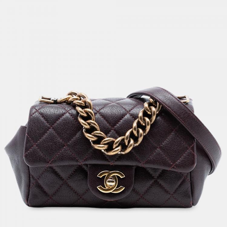 Pre Owned Chanel Red Mini Quilted Sheepskin Trapezio Flap
