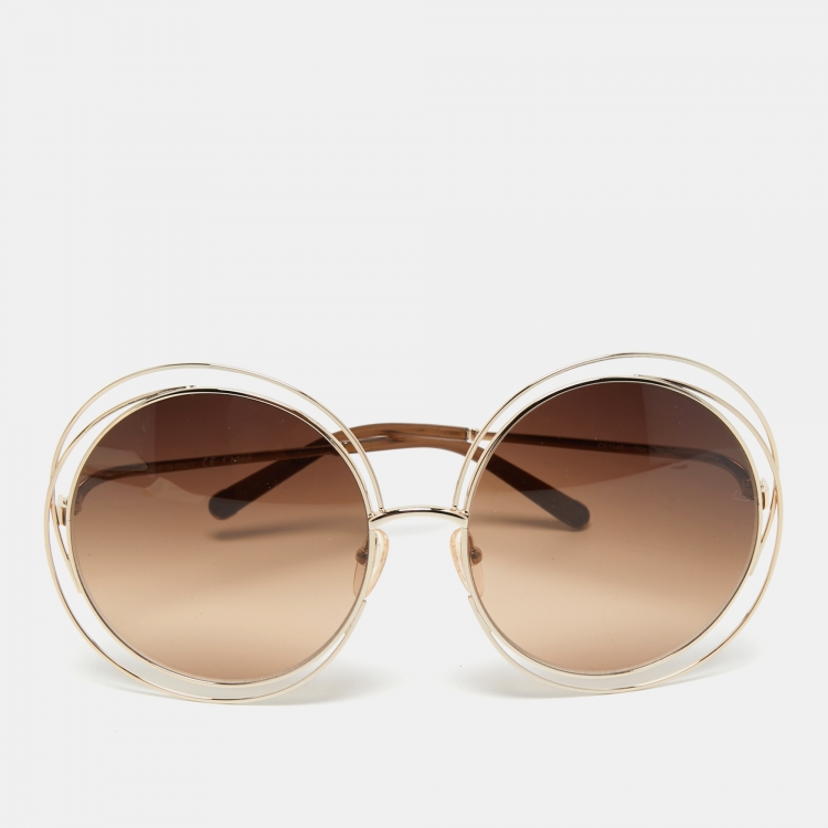 Pre Owned Chloé Gold Tone/ Brown Gradient Carlina Round Sunglasses
