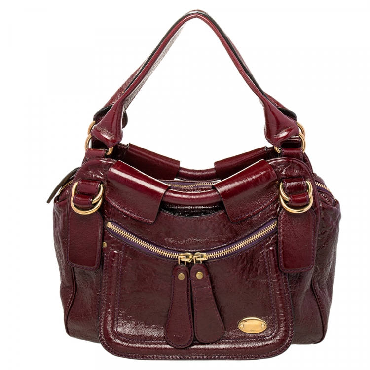 Chloe Burgundy Patent Leather Front Pocket Satchel