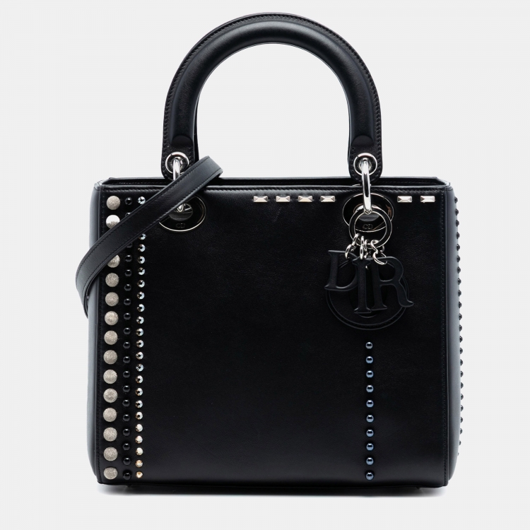 Dior Black Medium Lambskin Studded Crystal Pearl Lady Dior