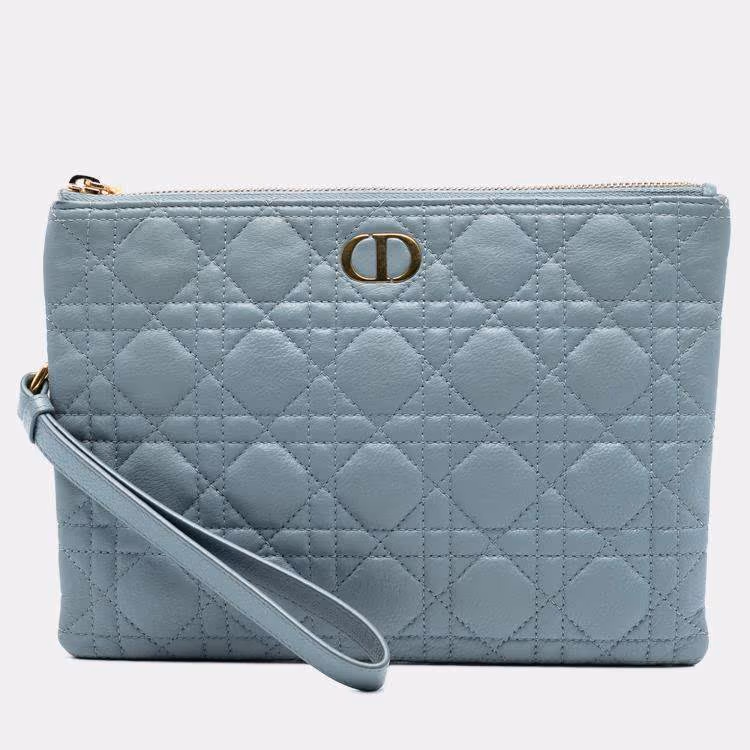 Dior Blue Medium Calfskin Cannage Caro Daily Pouch