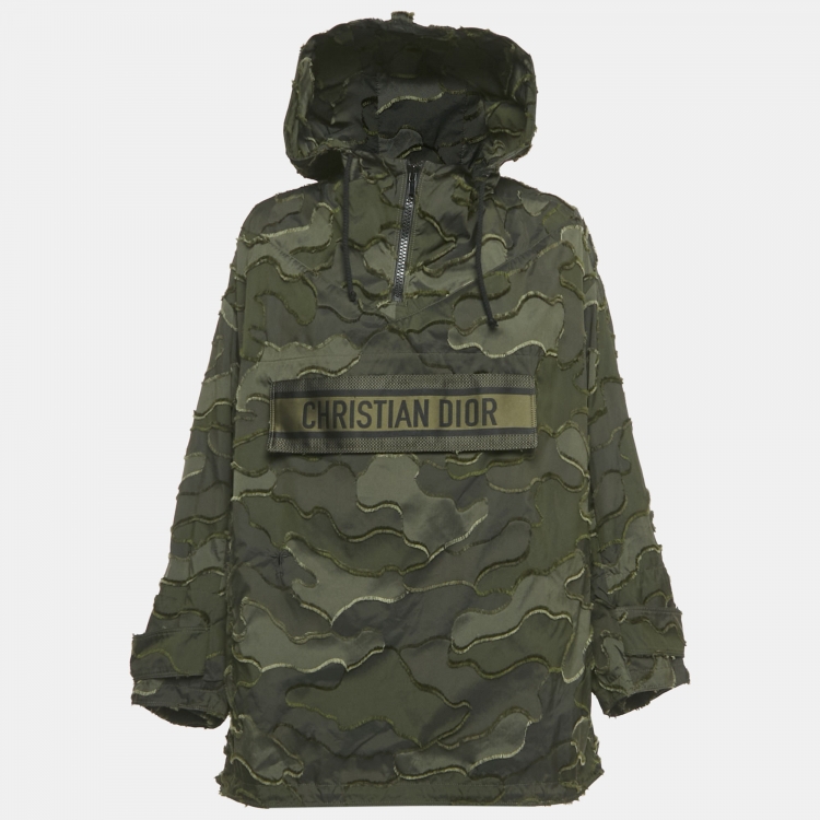 Dior Green Camouflage Synthetic Fil Coupe Anorak Hooded Jacket XS
