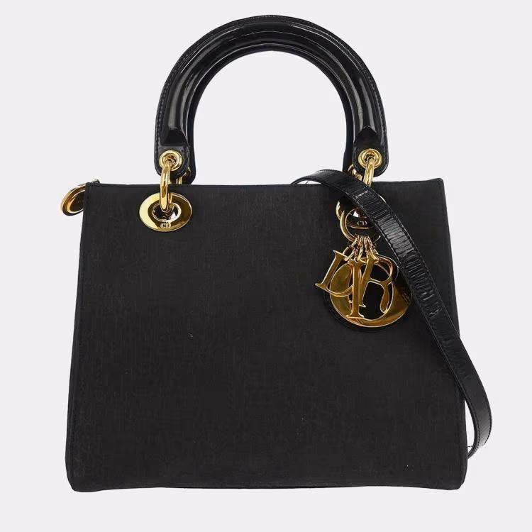 Dior Lady Dior Trotter Black Suede Top Handle Bag