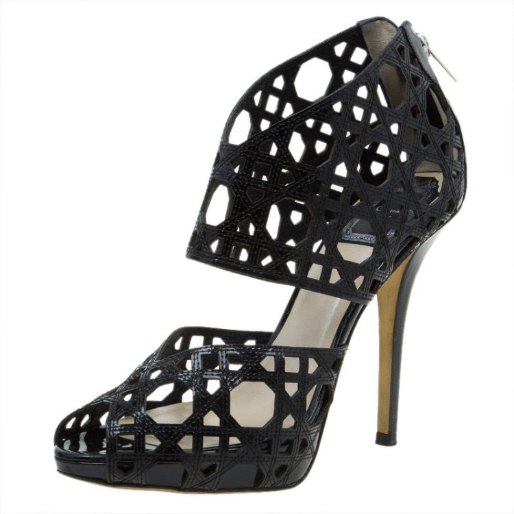 Dior Miss Dior Black Patent Cutout Caged Sandals Size 38.5