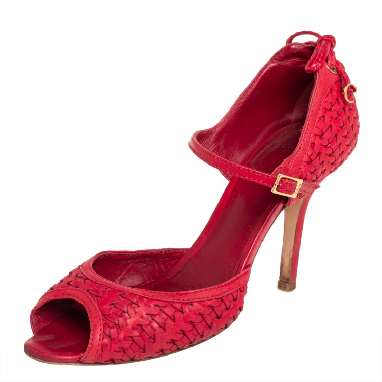 Dior Red Woven Leather Ankle Strap Sandals Size 36