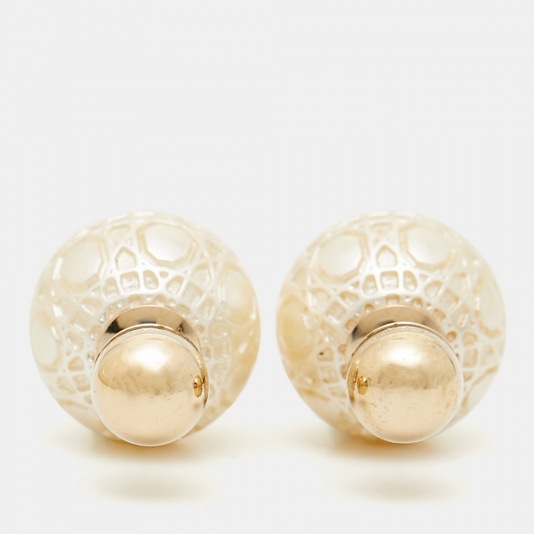 Dior Tribales Secret Cannage Faux Pearls Gold Tone Metal Earrings